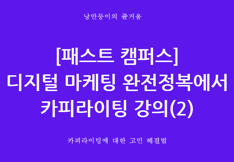 오늘은 디지털 마케팅 완전정복에서 카피라이팅 강의 첫 번째에 이어